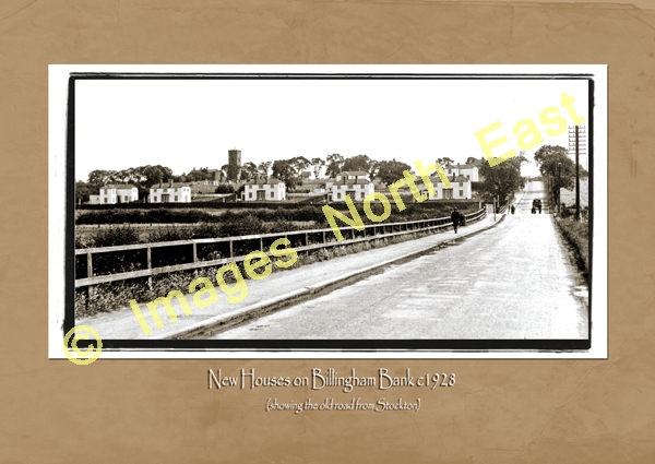The old road from Norton to Billingham with Billingham Bank in the distance, is shown here c1928. A narrow country lane across Billingham Bottoms at this time this turnpike route had itself been a replacement in 1789 for the old track used for many centuries get from Billingham to Stockton. Within two years the road would be modernised and widened as part of the improving of roads to and from the new ICI factory at Billingham. Note the very desirable detached white houses in the distance - they were built for the directors of the new factory.