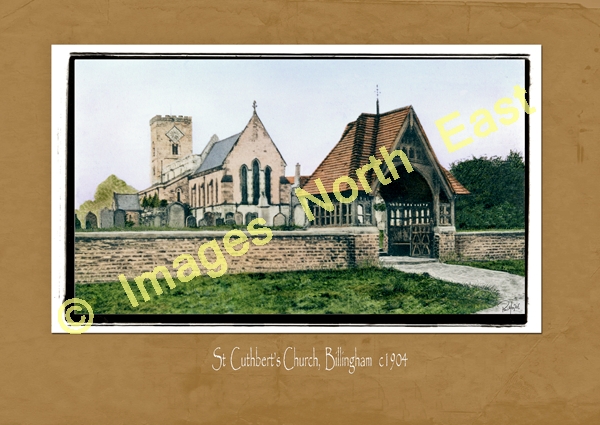 One of Billingham's landmarks for over a thousand years, St Cuthbert's Church can be viewed here from the east in 1904 from just beyond the lych gate. The Revd. Philip Rudd, incumbent between 1852 and 1901 had overseen extensive rebuilding of the church some of which can be seen here.